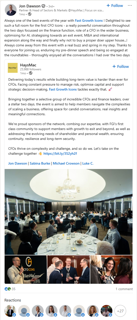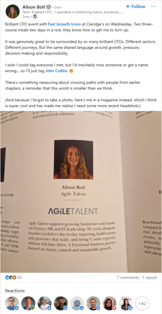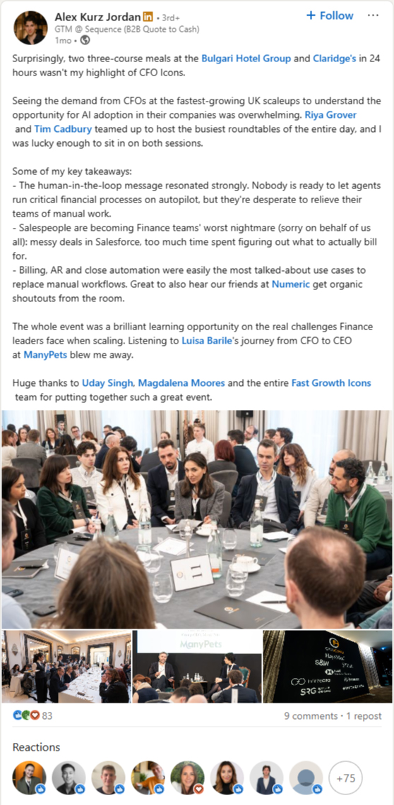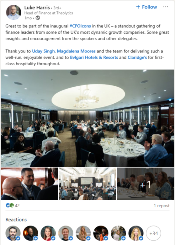 “The practical advice I got in two conversations over dinner was genuinely transformative to both my business and effectiveness as a leader.”